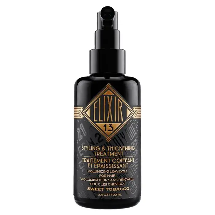 Amp up your hair game with the 18.21 Man Made Elixir 13 Styling & Thickening Treatment. This styling and thickening treatment is formulated with Procapil, an ingredient that is known to target the main causes of hair loss, and helps to improve scalp circulation, follicle aging, and follicle atrophy that DHT causes. The 18.21 Man Made Elixir 13 Styling & Thickening Treatment is ideal for those with fine and thinning hair and is enriched with ingredients that help to strengthen the hairs follicles, helping to prevent hair fall-out. Additionally, this elixir protects and repairs the hair follicle while stimulating follicle cell metabolism. The 18.21 Man Made Elixir 13 Styling & Thickening Treatment features the signature Sweet Tabacco aroma with dark-toned vanilla, manuka honey, sweet tobacco, and exotic woods.