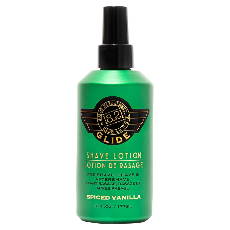 Shave with precision with the 18.21 Man Made Glide Shave Lotion - Spiced Vanilla. No water is needed, this transparent non-foaming lotion for pre-shave, prior to shaving, and post-shave lotion helps calm, smooth, hydrate, restores, and brightens skin.