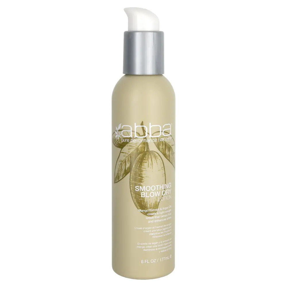 Abba Smoothing Blow Dry Lotion smooths the cuticle of the hair; leaving hair sleek, shiny and perfectly polished after blow-dry styling. This lotion improves manageability while reducing frizz and is formulated with thermal and UV protection.