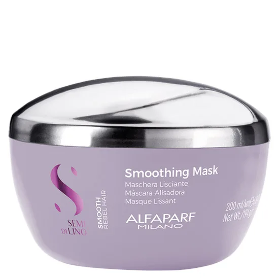 Tame your rebellious hair with the Alfaparf Semi Di Lino Smoothing Mask. This vegan soothing mask gives your hair incredible slip and glide when rinsing and provides rich texture as well. The Alfaparf Semi di Lino Smooth Smoothing Mask provides hair with intense detangling while leaving hair strands soft and ultra-hydrated. This mask protects hair against frizz, heat, and humidity and gives hair control and extraordinary softness. It works to align the hair fiber and counteract frizz that is caused by humidity, instantly restoring the hair's natural beauty. The Alfaparf Semi di Lino Smooth Smoothing Mask contains unique complexes and ingredients that help to protect and revive hair strands. The Color Fix Complex uses a UV filter and antioxidants to protect and prolong color vibrancy, while the Shine Fix Complex gives hair extraordinary shine with the help of flax seed extract. The Urban Defense Pro protects the hair fiber from pollutants and heavy metals by forming a barrier around the hair shaft. The Frizz Defeat Protein is a plant-derived active ingredient that protects and repairs frizzy hair, helping to leave each hair strand soft and tamed. It makes brushing your hair easier, speeds up your drying time, and keeps strands smooth without weighing them down. Lastly, the Climate-Proof Complex provides a protective barrier around the hair. This active ingredient keeps hair hydrated and protected from climate conditions due to humidity and temperature. This complex gives strands a silky feel and 7-day non-stop hydration and 72 hours of frizz control, even at 98% humidity!