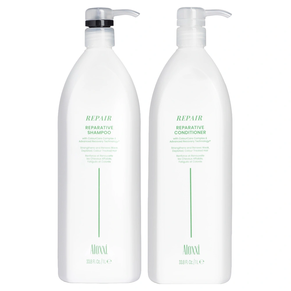 Aloxxi Reparative Conditioner: Water/Aqua/Eau, Cetyl Alcohol, Behentrimonium Chloride, Cetearyl Alcohol, Caprylic/Capric Triglyceride, Stearyl Alcohol, Dimethicone, Butyrosepermum Parkii (Shea) Butter, Fragrance (Parfum), Isopropyl Alcohol, Cetrimonium Chloride, Ceteareth-20, Polyquarternium-7, Polyquarternium-44, Polyquarternium-37, Propylene Glycol Dicaprylate/Dicprate, PPG-1 Trideceth-6, Phenoxyethanol, Ethylhexylglycerin, Helianthus Annuus (Sunflower) Seed Oil, Punica Granatum Fruit Extract, Vitis Vinifera (Grape) Seed Extract, Pinus Strobus Bark Extract, Camellia Sinensis Leaf Extract, Panax Ginseng Root Extract, Chamomilla Recutita (Matricaria) Flower Extract, Fucus Vesiculosus Extract, Arctostaphylos UVA-URSI Leaf Extract, Echinacea Angustifolia Extract, Glycyrrhiza Glabra (Licorice) Root Extract, Saccharum Officinarum (Sugarcane) Extract, Citrus Limon (Lemon) Fruit Extract, Pyrus Malus (Apple) Fruit Extract, Betaine, Hexylene Glycol, Hexapeptide-11, Pisum Sativum (PEA) Peptide, Cinnamidopropyltrimonium Chloride, HydrolyzedVegetable Protein PG-Propyl Silantriol, Hydrolyzed Ceratonia Silqua Seed Extract, Zea Mays (Corn) Starch, Guar Hydroxypropyltrimonium Chloride, Glycerin, Sodium PCA, Sodium Lactate, Arginine, Aspartic Acid, PCA, Glycene, Alanine, Serine, Valine, Proline, Threonine, Isoleucine
