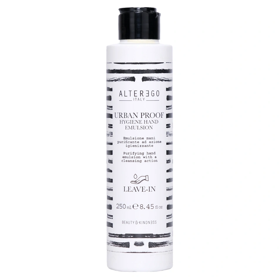The AlterEgo Urban Proof Hygiene Hand Emulsion is a hygienic lotion with extraordinary moisturizing and smoothing abilities. It contains Biocide (3% hydrogen peroxide). With this lotion, the hands are left clean and purified. The AlterEgo Urban Proof Hygiene Hand Emulsion features a fast-drying formula that you can use frequently without worrying about over-drying your hands.