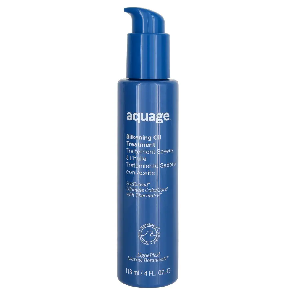 Aquage Silkening Oil treatment also expedites the blow drying and styling process and domesticates frizzy hair.