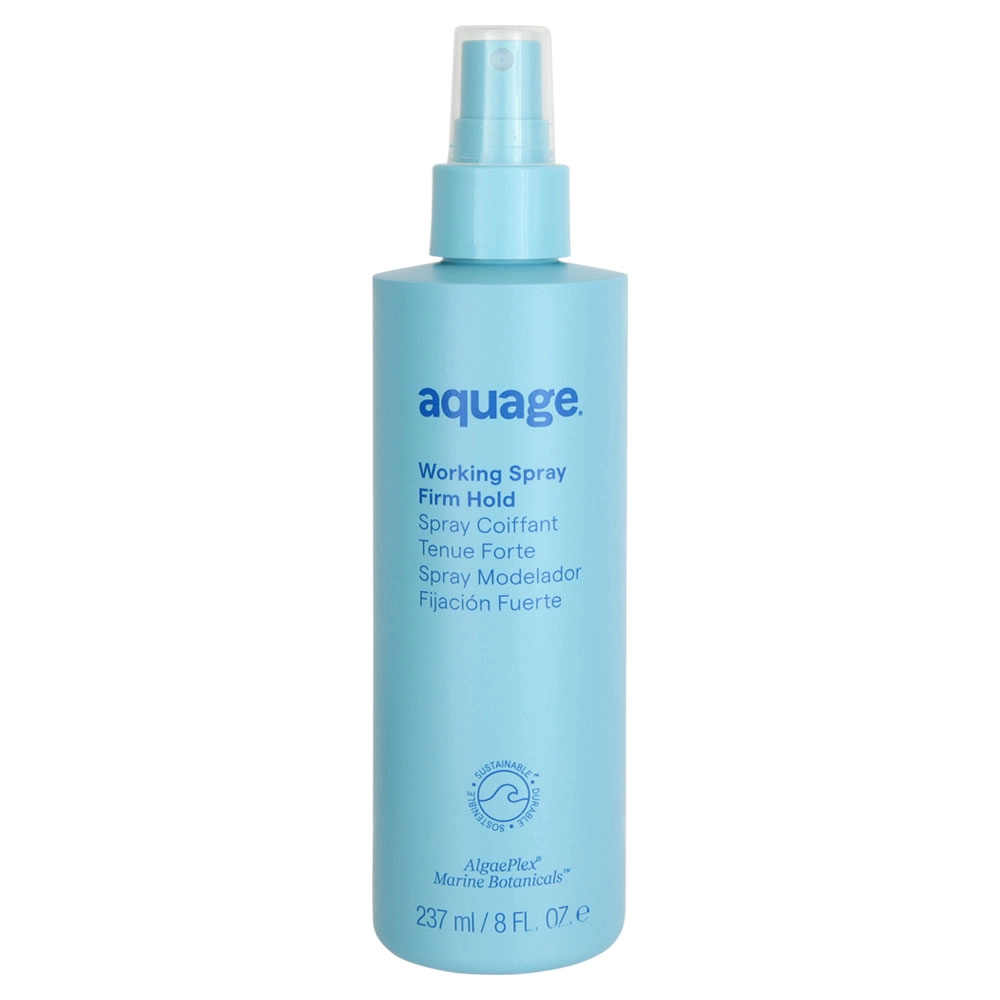 Style and protect your hair with the Working Spray by Aquage. Features advanced polymer technology to instantly lock in hold and deliver maximum shine to your hair. Works great as a thermal styling spray and will not stick to ceramic flat irons.