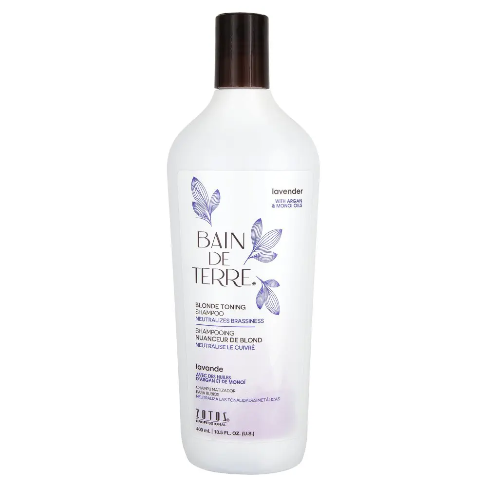 The Bain de Terre Lavender Color Enhancing Shampoo neutralizes brassy and yellow tones to reveal bright cool blonde tones. This shampoo contains fragrant lavender extracts known to rejuvenate and promote healthy hair. Ideal for those with color-treated and natural blonde, grey, and silver hair, this shampoo provides the ultimate in color longevity. It is infused with fragrant lavender, argan, and monoi oils to richly condition and moisturize over-processed and dry blonde hair strands. It leaves the hair rejuvenated, regenerated, and healthy with each use.