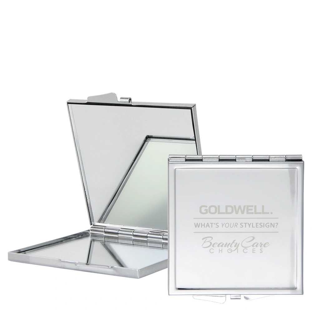 The BCC Exclusive Beauty Care Choices X Goldwell StyleSign Mirror is a stainless steel beauty mirror that is perfect for on-the-go use. This mirror features a compact design that fits perfectly in your purse, makeup bag, or car and looks incredibly sleek while you use it! The BCC Exclusive Beauty Care Choices X Goldwell StyleSign Mirror features one side that is your typical mirror, and the other side is magnified, allowing you to check even the finest details of your look. This exclusive mirror was made with Goldwell and is only available with Beauty Care Choices.