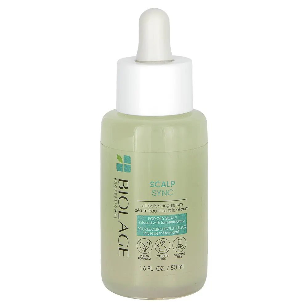 The Biolage Scalp Sync Oil Balancing Serum is an ultra-lightweight leave-in scalp serum that helps to instantly rebalance oily scalps. This serum helps to absorb and reduce excess scalp oils, preventing sebum from traveling down the hair strand and weighing down your styles. The Biolage Scalp Sync Oil Balancing Serum leaves both your hair and scalp feeling purified, healthy, and balanced, and is the ideal product for between wash days. This scalp serum is infused with fermented black and green tea to balance and purify the scalp, helping to create a fresher look and feel to the hair. The Biolage Scalp Sync Oil Balancing Serum is designed to purify the scalp for up to 48 hours, providing your hair and scalp with a lasting clean and refreshed look. This serum is ideal for all hair types and textures, is formulated without parabens, mineral oil, or silicones, and features a vegan and cruelty-free formula.