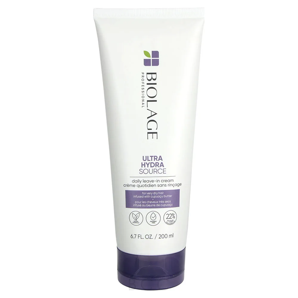 The Biolage Ultra Hydra Source Daily Leave-In Cream is formulated with expertise, infused with the nourishing benefits of Cupuacu butter, working its magic by deeply penetrating the hair fiber's core. This treatment allows you to unlock the secret to 72 hours of continuous moisture and impeccable frizz control, ensuring your hair remains luxuriously soft and beautifully conditioned. In addition to Cupuacu Butter, the Biolage Ultra Hydra Source Daily Leave-In Cream also includes Salicylic Acid to help improve hair manageability, while also leaving your hair feeling silky-smooth and touchably soft. This leave-in is ideal for those with overly dry and dull hair strands and provides hair with a concentrated dose of hydration.