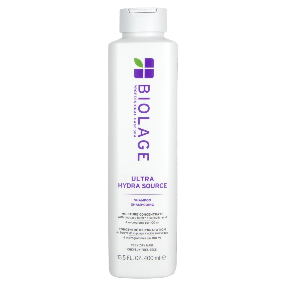 The Biolage Ultra Hydra Source Shampoo is an intense moisturizing shampoo that not only effectively cleanses the hair but also leaves it feeling incredibly moisturized, irresistibly soft, and remarkably shiny. Enriched with the goodness of aloe, apricot kernel oil, and cupuacu butter, this unique formula ensures a gentle yet thorough cleansing process while infusing deep hydration. Aloe vera adds incredible hydration and is great for scalp health and promotes hair growth. Apricot Kernel Oil is rich in nutrients like fatty acids and vitamin E which nourish the hair and help maintain its health and shine while helping to strengthen hair. Lastly, Cupuacu Butter which adds deep conditioning, frizz control, and natural shine to overly dry hair strands. Say hello to hair that's not only clean but also brimming with a newfound vitality and lustrous beauty.