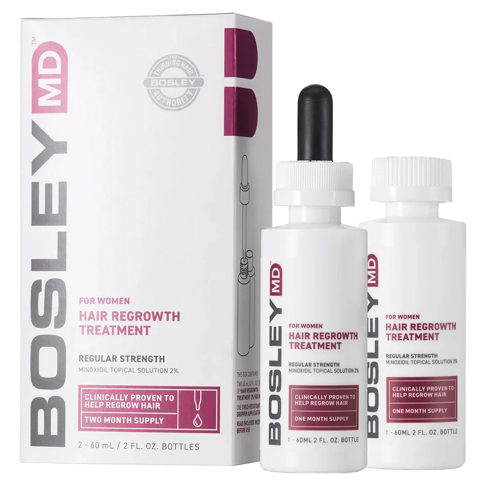 Clinically proven to regrow hair and to slow down further hair loss, BosleyMD Hair Regrowth Treatment Drops For Women - Minoxidil 2% is a great option! These treatment drops help to reactivate the hair follicles, stimulate hair growth, and fight hair loss with this clinically proven formula to achieve thicker, fuller-looking hair. These drops help remove the build-up of DHT from the scalp's surface, reducing scalp inflammation and increasing scalp circulation and strength. This helps to promote healthy hair growth and slow down further hair loss.