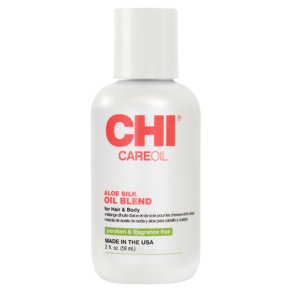 The CHI CareOil – Aloe Silk Oil Blend is a virtually weightless and fast-absorbing oil with multiple uses and a blend of aloe vera and silk proteins. This oil instantly nourishes and conditions helping to reduce dullness and dryness, leaving the hair and body softer and with a visible radiance and glow! The CHI CareOil – Aloe Silk Oil Blend contains essential nutrients, amino acids, and vitamins to help instantly improve the overall look and feel of the hair strands. This oil is infused with amino acids to help improve hair elasticity and strength, while silk proteins penetrate deeply into the hair shaft to create incredible shine and replenish hydration. The CHI CareOil – Aloe Silk Oil Blend additionally helps to protect hair strands from environmental stressors such as UV rays, pollutants, and humidity. This hair and body oil is ideal for all hair and skin types, is formulated without harsh sulfates, parabens, or gluten, and is 100% cruelty-free.