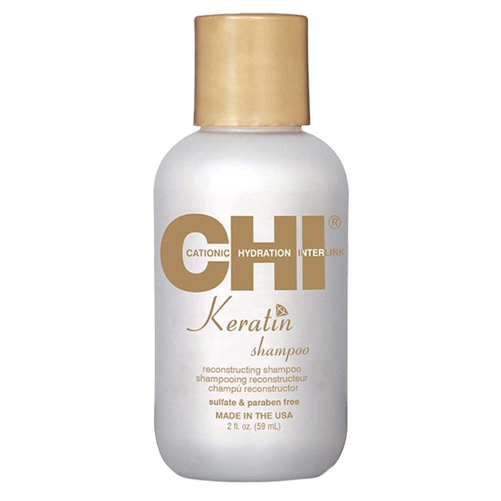 The CHI Keratin Reconstructing Shampoo effectively replenishes and safeguards the hair's inherent keratin protein, resulting in enhanced flexibility and reduced risk of breakage. It delivers profound hydration to revive the hair, reinstating its softness and imparting a radiant shine. With the CHI Keratin Reconstructing Shampoo, damaged hair undergoes a reconstructive process as it replenishes the hair's natural keratin levels, and fortifies and seals the hair's protective cuticle, thereby shielding it from potential damage in the future.