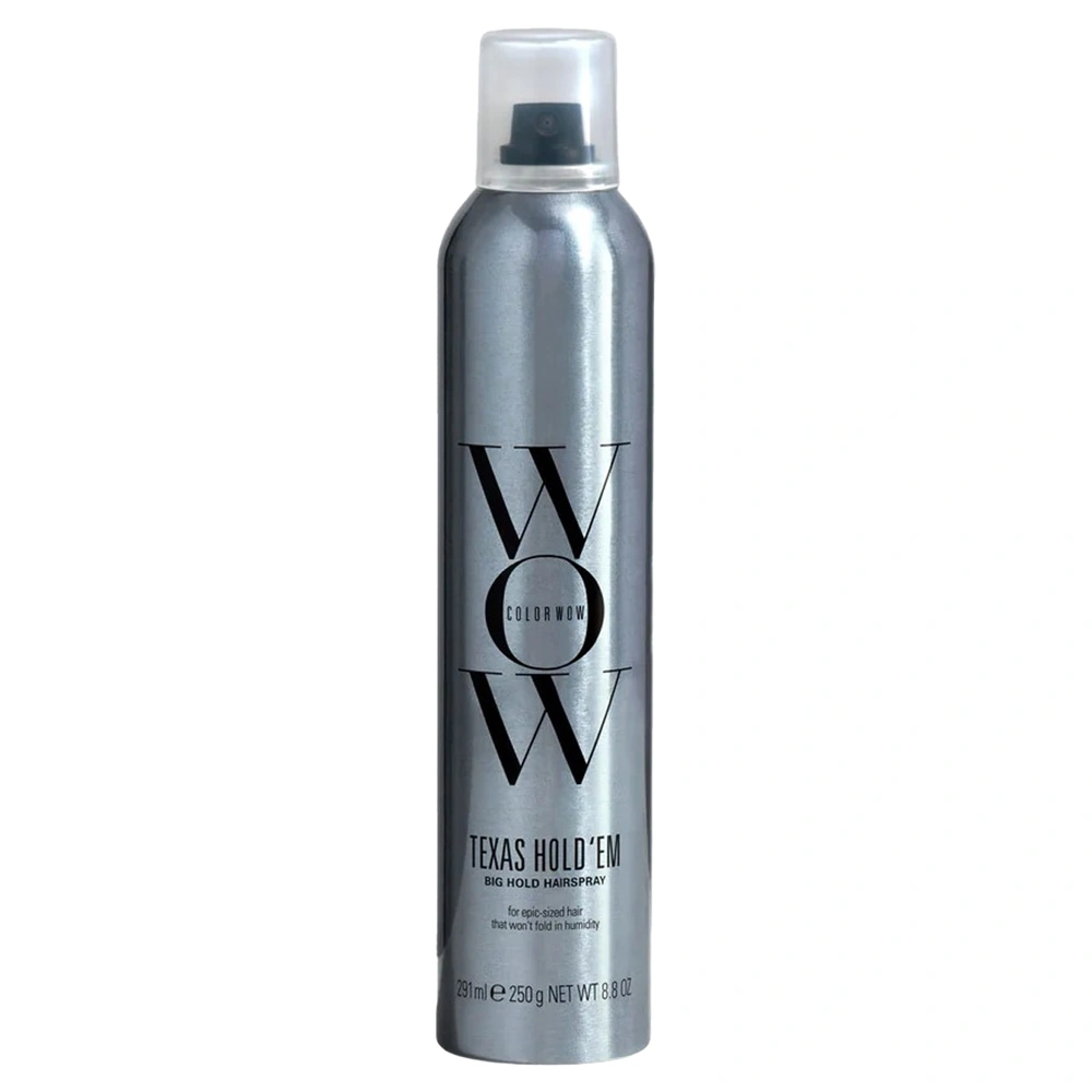 The Color Wow Texas Hold 'Em - Big Hold Hairspray is a strong holding hairspray with heat protection that helps you create long-lasting styles that won’t fold or flatten in high humidity. This hairspray is infused with two forms of heat protection and UV protection, helping to effectively shield hair strands from damaging aggressors. The Color Wow Texas Hold 'Em - Big Hold Hairspray features a fast-drying and flake-free formula that is less wet, and features a reduced pH so it is gentler on the hair. This hairspray brushes out of the hair easily, yet delivers extra hold with incredible style retention in high humidity. The Color Wow Texas Hold 'Em - Big Hold Hairspray is ideal for all hair types and textures and is the perfect finisher for any style.