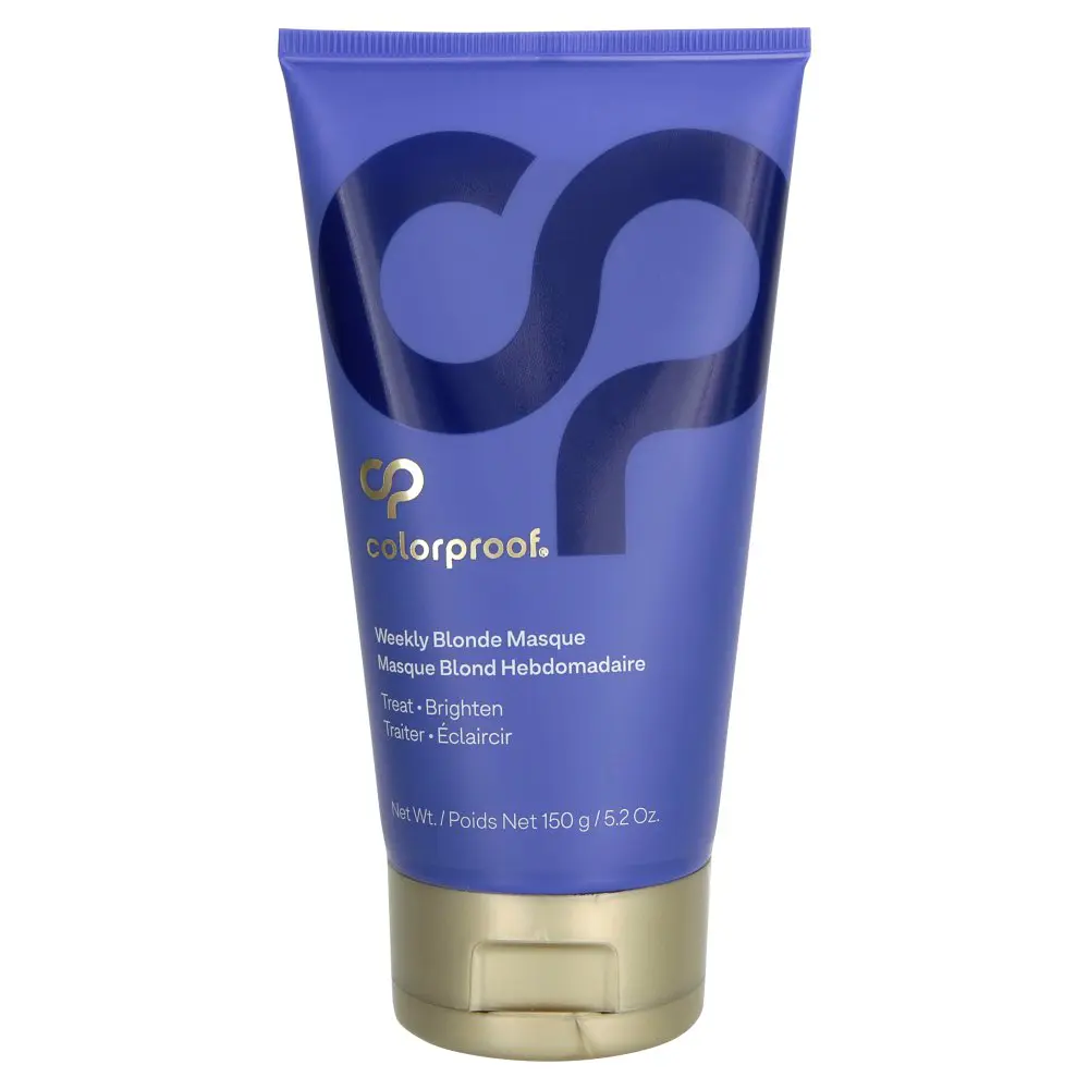 Fortify, tone, and protect hair with the ColorProof Weekly Blonde Masque. This ultra-pigmented purple masque helps correct and neutralize brassy tones while treating damage caused by lightning and coloring hair. Enriching hair and smoothing the cuticle, this masque will leave your hair shiny, color-protected, radiant, and bright!