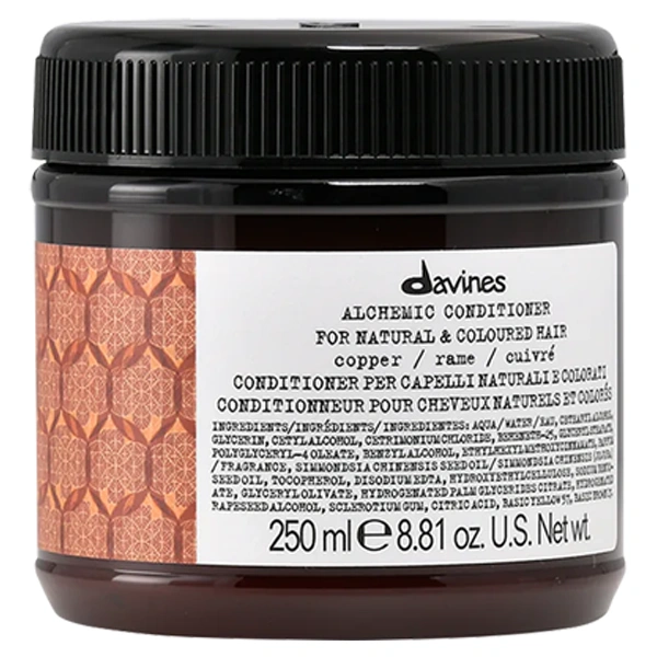 Unleash the fiery brilliance of your copper and warm red hair with the Davines Alchemic Copper Conditioner. This color-enhancing conditioner is expertly designed to ignite vibrancy, adding depth and luminosity to natural and color-treated hair. Pure pigments deposit rich copper tones onto the hair's surface, creating captivating reflections and enhancing your hair's natural radiance. Beyond color enhancement, this conditioner deeply hydrates and improves combability, leaving your hair feeling soft, manageable, and healthy. Infused with jojoba oil, it provides essential moisture, protection, and shine, ensuring your copper locks look their absolute best. Formulated without silicones and parabens, the Alchemic Copper Conditioner offers a gentle yet effective way to maintain and enhance your vibrant color. Plus, it washes out in approximately three shampoos, allowing you to experiment with your look risk-free.