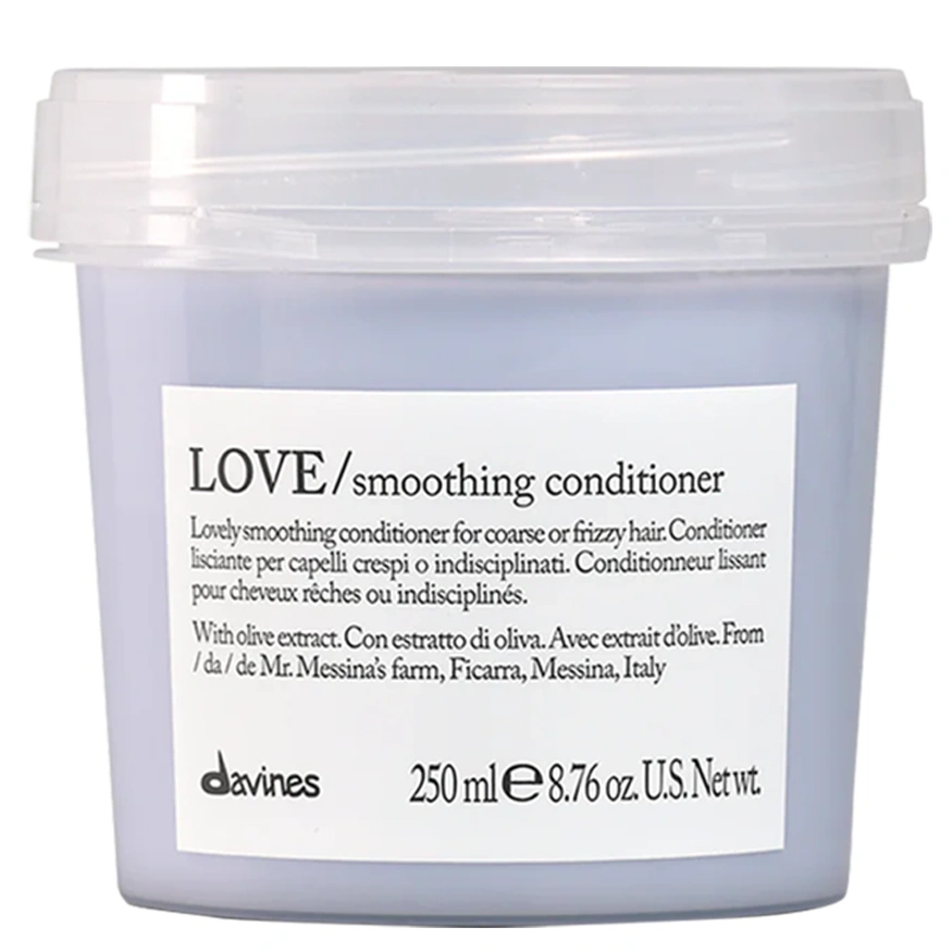 The Davines Love/ Smoothing Conditioner is an anti-frizz, smoothing conditioner designed to tame coarse, frizzy, or unruly hair types. This conditioner helps to leave every hair strand controlled, combable, and shiny for a sleek, smooth look. The Davines Love/ Smoothing Conditioner is infused with Minuta Olive Extract harvested from Mr. Carmelo Messina's farm in Ficarra, Messina, Italy, as a part of Slow Food Presidium. Olive extract is packed with fatty acids and Vitamin E, which are extremely nourishing, softening, and moisturizing to the hair. The Davines Love/ Smoothing Conditioner is formulated with 88.7% natural origin ingredients and is vegan, cruelty-free, and paraben-free.