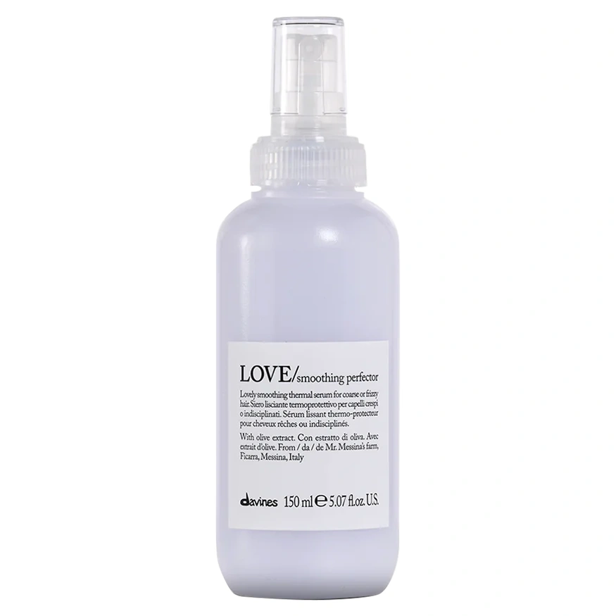 The Davines Love/ Smoothing Perfector is a smoothing anti-frizz hair cream designed to help smooth frizzy and unruly hair strands. This perfector's formula deeply moisturizes strands without weighing the hair down, leaving it soft, easy to comb, and full of shine. The Davines Love/ Smoothing Perfector provides the hair with thermal protection up to 450 degrees F and facilitates straightening. This pre-styler is infused with Minuta Olive Extract harvested from Mr. Carmelo Messina's farm in Ficarra, Messina, Italy, as a part of Slow Food Presidium. Olive Extract is packed with fatty acids and Vitamin E, which are extremely nourishing, softening, and moisturizing.