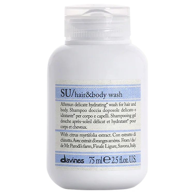 The Davines SU/ Hair & Body Wash is an ultra-hydrating, nourishing, multi-benefit hair and body wash ideal for after-sun use. This cleanser provides the hair and body with a full-bodied foaming lather that deeply moisturizes and cleanses both hair and skin. This replenishing formula is packed with antioxidants found in the Savona chinotto extract sourced directly from Mr. Parodi’s farm in Savona, Italy. This protected citrus extract contains antioxidants with anti-inflammatory properties, such as vitamin C, which protect hair and skin cells from free radicals caused by prolonged exposure to the sun.