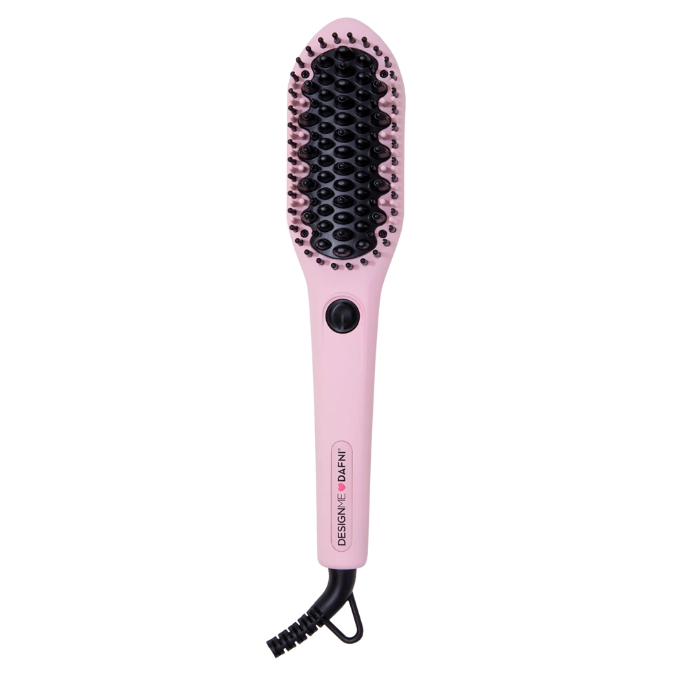 The DesignMe X Dafni Smoothing Brush is a smoothing brush that uses advanced heat technology and anti-static ceramic bristles to straighten and smooth hair, while boosting shine with each stroke. This thermal styling brush uses its wide paddles to cover seven times more surface area than a flat iron, making it easier to style more hair with less effort! The DesignMe X Dafni Smoothing Brush provides hair with consistent 365-degree temperature to ensure effective results without causing damage to the hair. This thermal brushes' gentle bristles glide easily through the hair, without clamping or tugging on the hair. The DesignMe X Dafni Smoothing Brush leaves each and every hair strand healthy, smooth, polished, and with long-lasting results. This brush additionally comes with a heat-safe travel pouch, making it ideal for taking on the go!