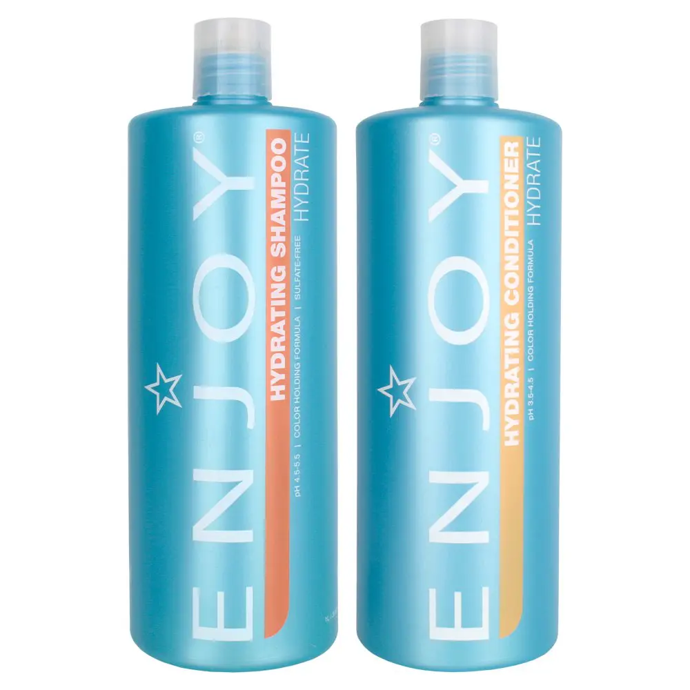 Designed for all hair types, the Enjoy Hydrating Shampoo is a lightweight and nourishing formula specifically crafted to effortlessly cleanse and moisturize your hair. Not only does it provide deep hydration, but it also enhances shine and softness, leaving your hair looking healthy and vibrant. One of the standout features of the Enjoy Hydrating Shampoo is its sulfate-free formulation. By excluding sulfates, this shampoo ensures that your hair color remains intact and vibrant for longer periods. You can say goodbye to worrying about your hair color fading out prematurely. Instead, you can enjoy the benefits of a gentle yet effective cleansing experience that maintains the integrity of your hair color. Regardless of whether you have dry, oily, damaged, or color-treated hair, the Enjoy Hydrating Shampoo caters to all hair types, making it a versatile option for everyone. Its lightweight formula won't weigh your hair down, and it works to restore moisture, leaving your locks beautifully clean, nourished, and manageable.
