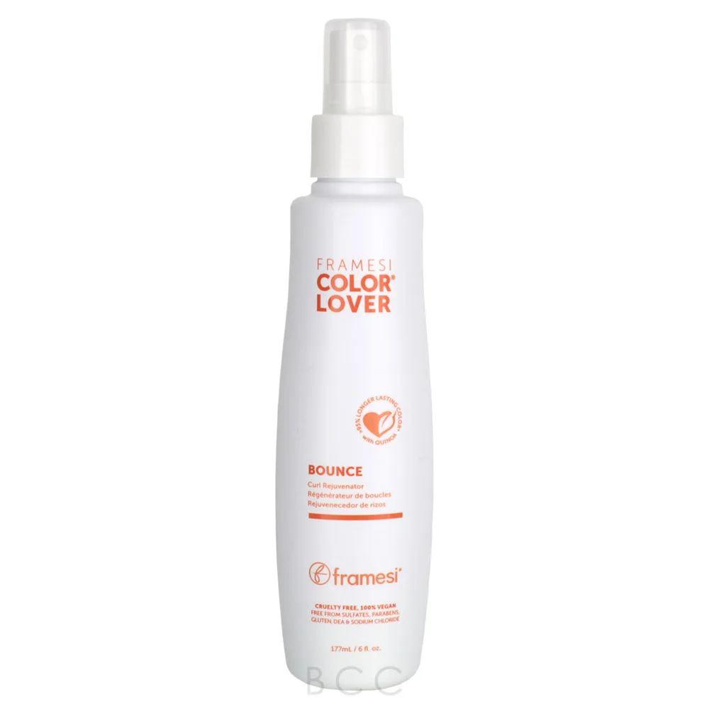 The Framesi Color Lover Bounce Curl Rejuvenator is an energizing curl spray that enhances the curls and restores the shape for a smooth and frizz-free look. Gives your hair bounce and works great to freshen up the next day's hair. Its moisture-rich formula helps to tame wild curls while also delivering humidity protection and curl support. The Framesi Color Lover Bounce Curl Rejuvenator has a lightweight formula that never coats or dulls the hair. Additionally, its formula is 100% vegan, cruelty-free, gluten-free, and color-safe.