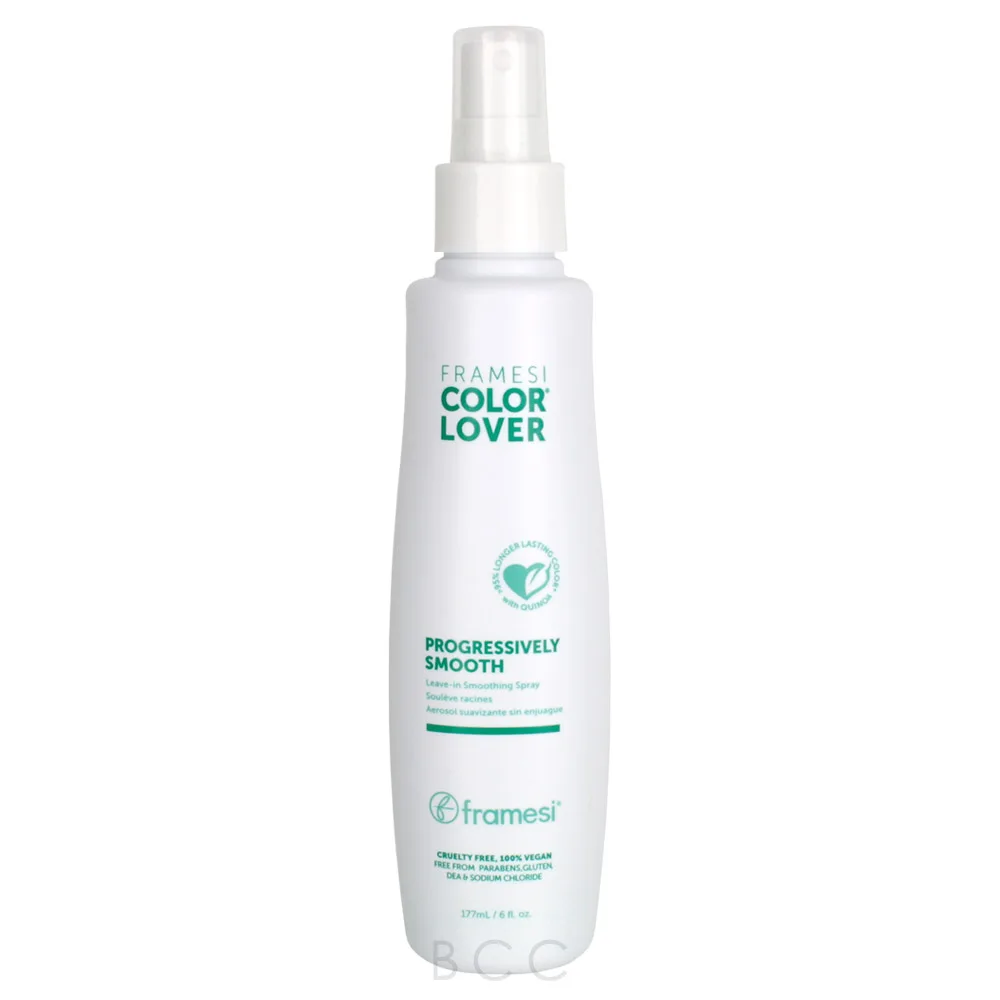 The Framesi Color Lover Progressively Smooth Leave-In Smoothing Spray is a smoothing spray that penetrates deep into the hair to transform your hair from the inside out the more you use it. It diminishes frizz and helps to smooth and flatten hair for a sleek, shiny, and straight appearance. 100% vegan, cruelty-free, gluten-free, and color-safe. The Framesi Color Lover Progressively Smooth Leave-In Smoothing Spray offers powerful hair protection and repair and gives noticeable results in as little as three applications.