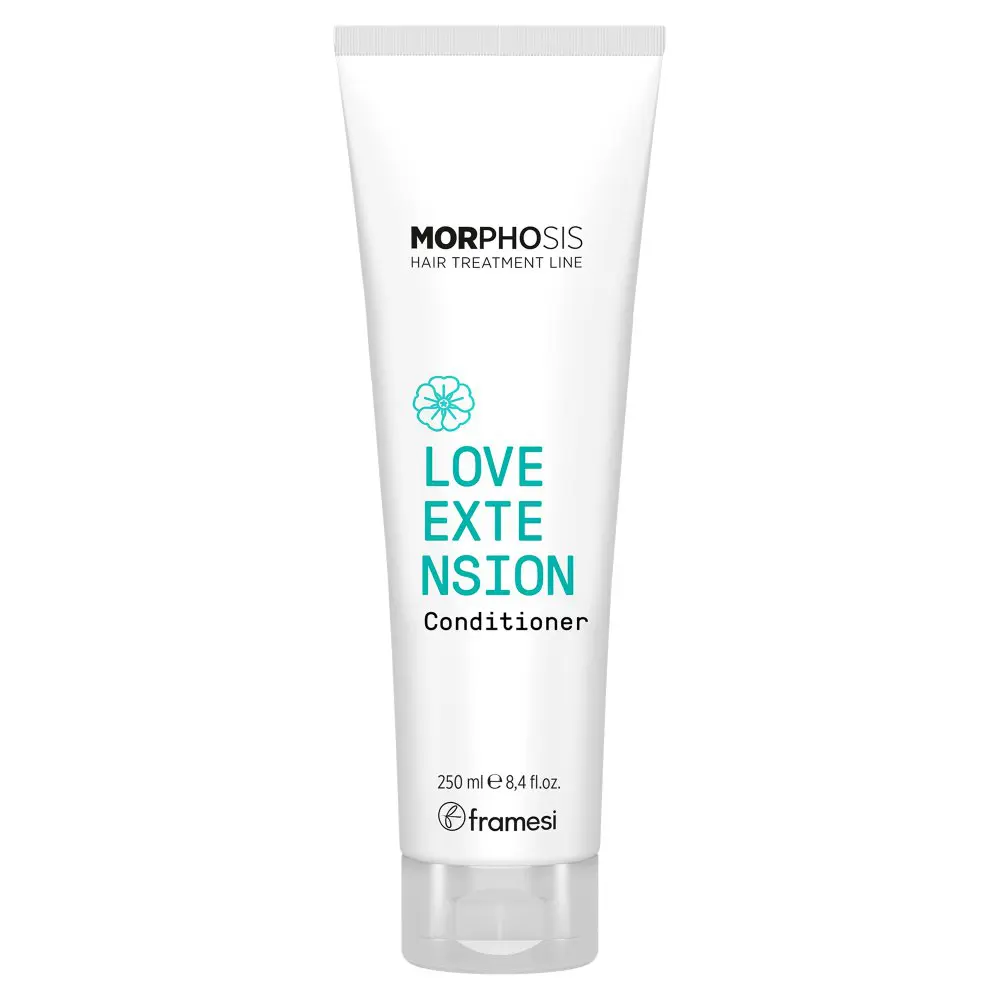 The Framesi Morphosis Hair Treatment Line Love Extension Conditioner is a conditioner infused with a Fermented Extract of Althea and Hydrolyzed Soy Proteins. This conditioner features soothing and softening properties as it gently cleanses, and hydrates extensions without weighing them down. The Framesi Morphosis Hair Treatment Line Love Extension Conditioner makes extensions simple and easy to detangle and leaves hair strands incredibly silky. This conditioner features a delightful fragrance that is infused with essences such as bergamot, blood orange and mandarin, lavender, orange blossom, Tahitian vanilla, cedar and cashmere wood, and, last of all, soft musk.