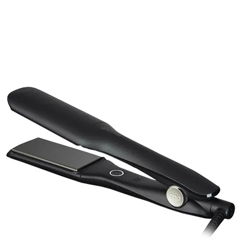 Transform your styling routine with the ghd Max Styler, winner of Allure's Best of Beauty Award for Best Flat Iron. Designed for long, thick, and curly hair, this professional 2" wide plate styler delivers sleek results in half the time. Featuring two new generation heat sensors, it ensures the optimum styling temperature of 365°F, resulting in 80% more shine and up to 2x less frizz for a salon-quality finish. The Max Styler heats up in just 30 seconds and includes a heat-resistant protective plate guard for safety. With its sleek design and curved edges, this styler is perfect for creating glass-like straight styles or loose, natural-looking waves. Elevate your styling game with the ghd Max Styler.