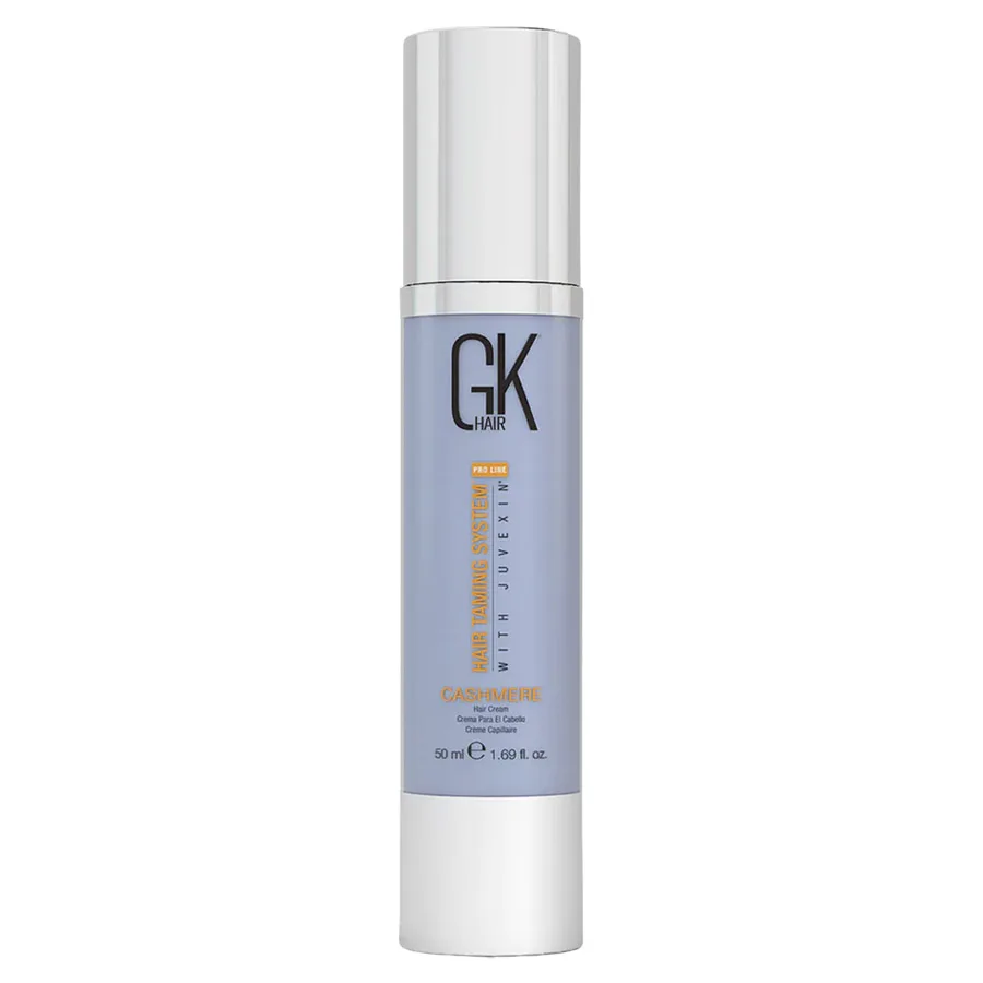 This lightweight Smoothing Cream transforms dull and dry hair into all-day smooth, frizz-free locks. This cream works well for all hair types but is ideal for coarse and curly hair textures. It helps to moisturize hair strands without weighing hair down, making it perfect for go-to-waves. The GK Hair Cashmere eliminates flyaways and frizzy hair while boosting shine for a perfectly polished look. It is infused with Juvexin Keratin and Argan Oil for an anti-aging blend that restores your hair's youthful state while protecting against future damage. It also uses natural grain extracts to help your hair lock in moisture into the hair strands, keeping them super smooth. The GK Hair Cashmere is formulated without sulfates, parabens, or gluten.