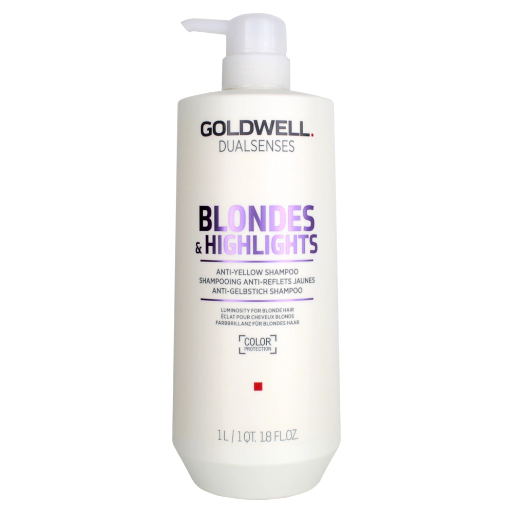 The Goldwell Anti-Brassiness Shampoo is specially designed for luminous blonde and highlighted hair. Enriched with the Superior Fade Stop Formula and Mirabelle Lipid Oil, this shampoo effectively minimizes color fading. It also combats unwanted yellow tones, enhancing blonde color reflections while delivering immediate regenerative care. Infused with Goldwell's MicroPROtec Complex, the shampoo ensures swift and even distribution of essential care ingredients. It provides protection against color fade-out and harnesses the innovative Luminescine technology. This unique feature converts non-visible UV light into visible light, resulting in a magnificent brilliance that radiates from your hair. Indulge in the delightful aroma of this shampoo, featuring subtle citrus notes complemented by floral accents of jasmine and soft rose leaves. The base is gently layered with hints of orris and almond, creating an inviting and luxurious sensory experience.