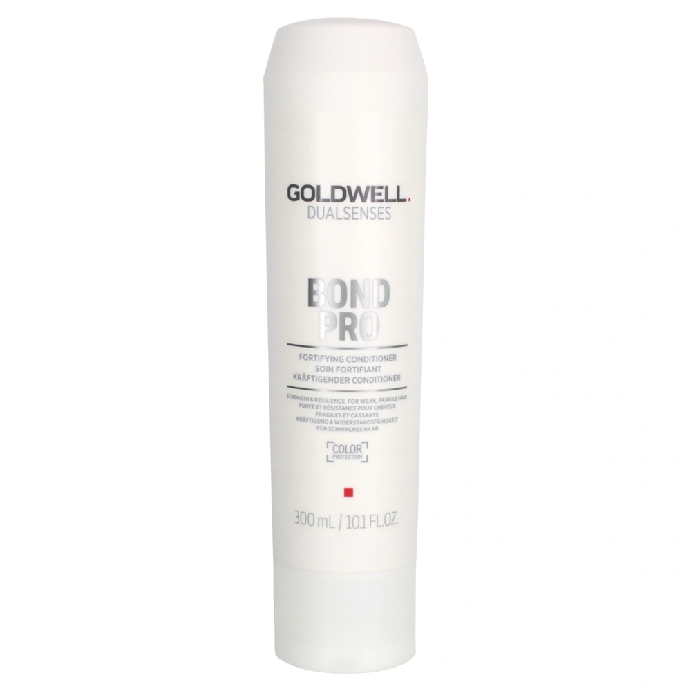This conditioner for weak and fragile hair is formulated with Goldwell's microPROtec complex and Inter-Amino-Bond-Builder to provide strength to weak points in the hair shaft. The Goldwell Dualsenses Bond Pro Fortifying Conditioner is infused with soy protein to reinforce hair for instantly stronger hair with visibly less breakage. Peptides and amino acids penetrate the hair cortex, targeting the damaged areas, while compounds of red and brown algae extracts form ionic and hydrogen bonds with remaining hair proteins, embedding these peptides in the inner cortex. The Goldwell Dualsenses Bond Pro Fortifying Conditioner features a scent of delicate and fresh tea, wrapped by subtle orris and musks with a touch of velvet peach skin and precious cedar wood.