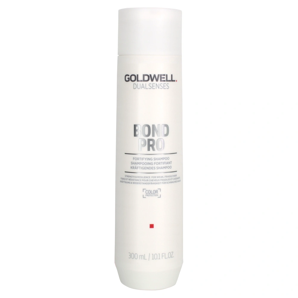 The Goldwell Dualsenses Bond Pro Fortifying Shampoo is a revolutionary hair care solution that goes beyond the ordinary. Infused with Goldwell's microPROtec complex and Inter-Amino-Bond-Builder, this shampoo works wonders by instantly revitalizing and fortifying your hair from the inside out. Gentle yet powerful, it treats your hair as delicately as water, ensuring a soothing and nurturing experience with every wash. What sets this shampoo apart is its exceptional Fade stop formula, meticulously designed to safeguard your hair color's vibrancy, effectively minimizing color fading with every use. Peptides and amino acids take center stage, deeply penetrating the hair cortex to precisely target and repair damaged areas. Meanwhile, a remarkable blend of red and brown algae extracts forms ionic and hydrogen bonds with the remaining hair proteins. This intricate bonding process embeds those essential peptides deep within the inner cortex, ensuring lasting strength, resilience, and rejuvenation. Consider the Goldwell Dualsenses Bond Pro Fortifying Shampoo as your hair's first line of defense against breakage and damage. It's more than just a shampoo, it's a transformative experience that pampers your hair while setting the stage for healthier, more vibrant, and beautifully fortified locks. Discover the power of Goldwell's expertise and take the first step towards hair that radiates strength and protection, wash after wash.