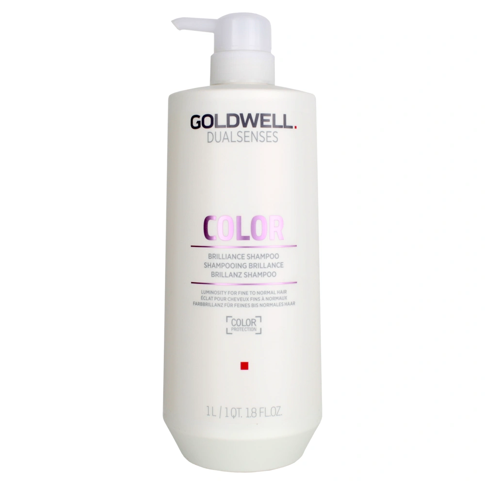The Goldwell Dualsenses Color Brilliance Shampoo is a luxurious solution designed for fine to normal hair, expertly formulated with the innovative microPROtec complex and enchanting Luminescine technology. Luminescine, a radiant revelation, works its magic by awakening the vivid luminosity of both colored and non-colored hair, casting a spell of brilliance that captivates the eye. Embracing your hair like a shield, the microPROtec complex performs a symphony of defense – an instant and enduring safeguard for your hair's delicate cuticles. It fortifies your locks, rendering them resilient against the ceaseless barrage of daily stressors, allowing you to stride confidently through life's bustling rhythm. This shampoo, as gentle as water, lavishes your tresses with tender care. Its ingenious FadeStopFormula acts as a vigilant guardian, diligently combating the fading forces that often threaten to dull your radiant color with each and every use.