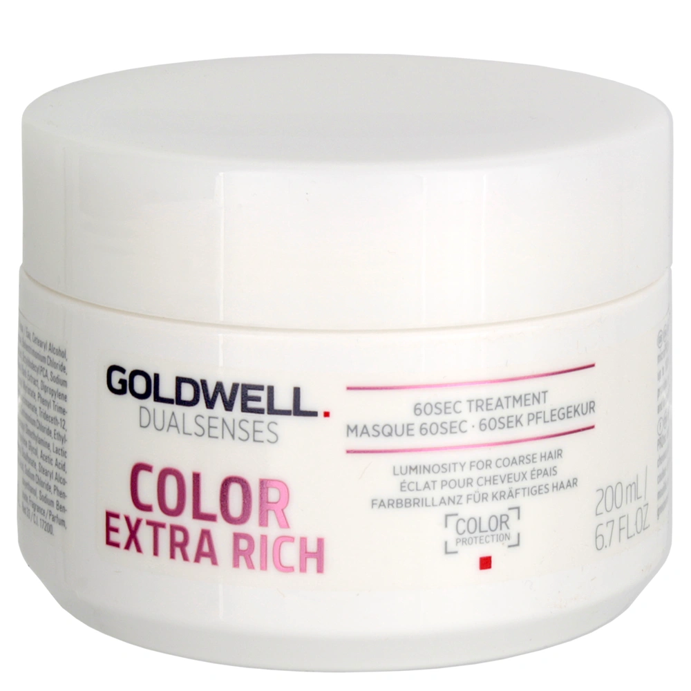 This 60 Second Treatment works great for thick coarse color-treated hair to regenerate hair up to 100% in just 60 seconds. The hair mask restores color brilliance and provides nourishing care with the ColorChromaComplex and Raspberry Seed Oil. The Goldwell Dualsenses Color -Extra Rich 60sec Treatment was formulated for those with thick and coarse hair and features a blend of microPROtec complex and Luminescine. MicroPROtec Complex distributes essential care ingredients quickly and evenly and protects from color fade-out, while Luminescine technology transforms non-visible UV light into visible light for magnificent brilliance.