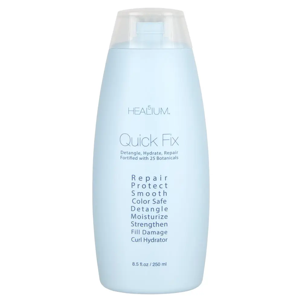 The Healium 5 Quick Fix Treatment is an incredibly versatile leave-in treatment that provides nutrition, shine, moisture, smoothness, and UV protection to dry, damaged, overworked hair without leaving a heavy residue build-up. This treatment can be blended with any smoothing products to encourage healthy styling. The Healium 5 Quick Fix is ideal for all hair types, especially on curly hair to accentuate and moisturize curls. This formula has three proteins to help repair damage and strengthen your strands, these proteins are Hydrolyzed Soy, Wheat, and Keratin to help repair the hair from the inside out! The Healium 5 Quick Fix provides the hair with UV protection as well as thermal protection, making this leave-in treatment your one-stop shop for tunning hair strands.