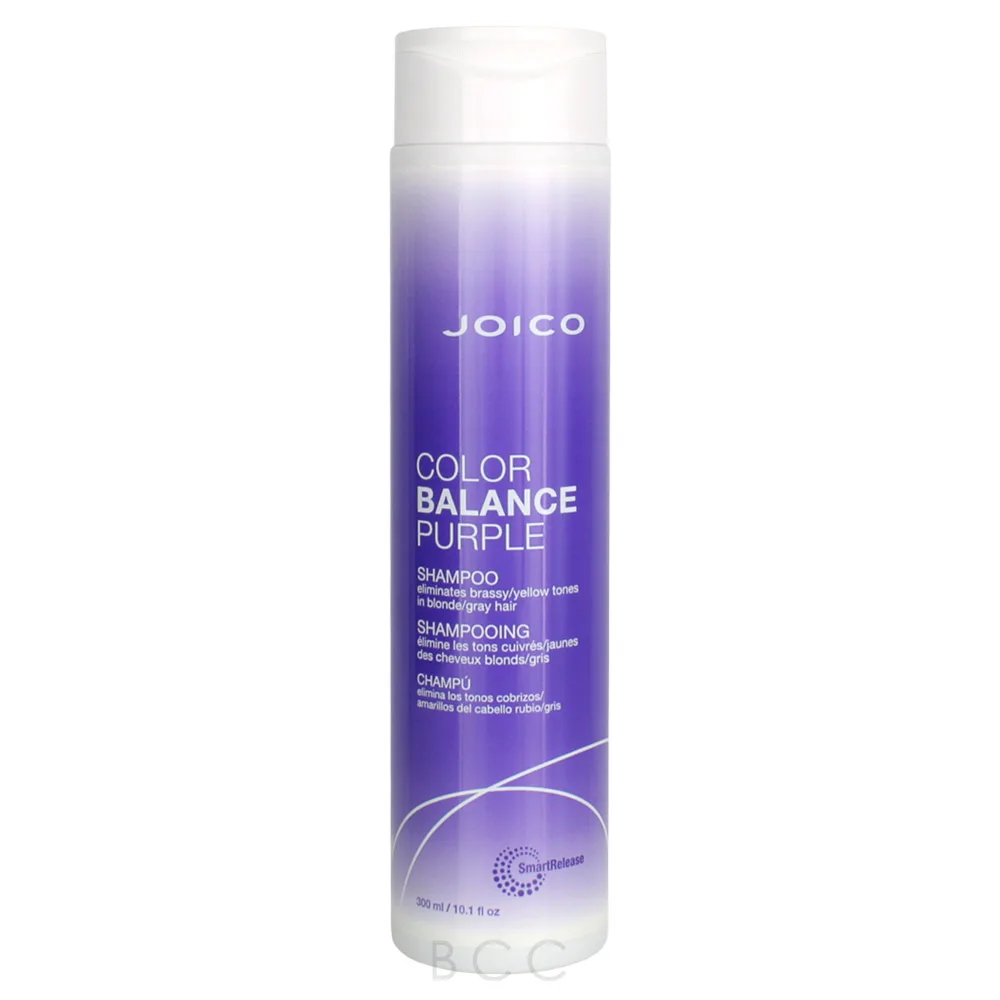 If you are looking to add sparkling glimmering tones to platinum blonde, snow white, or beautiful silver hair then the Joico Color Balance Purple Shampoo is just what you're looking for. This shampoo is formulated to neutralize unwanted brassy/yellow tones while protecting against color fading, leaving you with hair that is shiny and frizz-free. This toning shampoo helps to create hair strands that are 2X stronger overall and gives the hair long-lasting results through 12 washes, keeping your hair looking salon-fresh longer. The Joico Color Balance Purple Shampoo is formulated with pure Violet Pigments that attach directly to the hair to instantly neutralize unwanted warmth in your blonde locks. A Multi-Spectrum Defense Complex helps protect color against fading, while a Bio-Advanced Peptide Complex delivers non-stop repair and protection for healthier hair. This shampoo also uses Green Tea Extract and UV absorbers to fight against hair color fading and tone change, and the SmartRelease Technology uses a liposome delivery system that continuously releases Rosehip Oil, Arginine, and Keratin into the hair to repair, strengthen, and protect strands from the damage caused by daily styling.