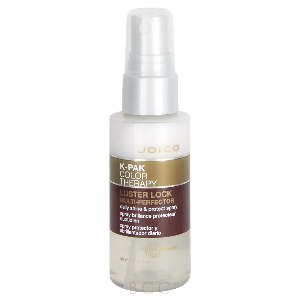 Lock down that vibrant hair color with the powerful Joico K-Pak Color Therapy Luster Lock Multi-Perfector Spray that infuses your hair with exotic and nourishing Argan and Manketti Oils for healthier, shinier, and stronger hair. This silky leave-in is wonderful for color-treated hair and gives strands a gorgeous and glass-like shine while also providing hair with protection against color fade-out and damage. With the Joico K-Pak Color Therapy Luster Lock Multi-Perfector Spray, your hair will be left 9 times stronger, instantly detangled, protected from thermal styling, repaired, frizz controlled, and with vibrant and long-lasting color vibrancy. It is infused with African Manketti Oil, Keratin, Argan Oil, and SmartRelease Technology. The African Manketti Oil provides the hair with a rich source of vitamin E which is known to help prevent hair color fading. Argan Oil also provides the hair with Vitamin E, antioxidants, and essential fatty acids that help to deeply hydrate and nourish hair strands. Keratin is a protective protein that is naturally found within the hair. It actively seeks out damage and helps to repair hair by replacing lost or broken proteins within the hair shaft. SmartRelease Technology uses a liposome delivery system to continuously infuse the hair with Rosehip Oil, Arginine, and Keratin to help repair, strengthen, and protect hair from the effects of daily styling.