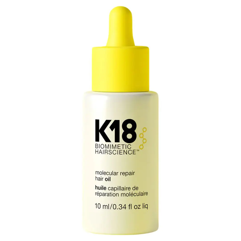 Polypeptide chains are found at the hair strand's inner layers and are responsible for the hair's strength and elasticity. Chemically treating hair or heat styling causes these chains to break, causing split ends. The K18Peptide is the ultimate reconnector for that deep hair damage. That peptide fuels the K18 Biomimetic Hair Science Molecular Repair Hair Oil to fight frizz deep down, in two layers of the hair fiber, and on the outer layer for immediate frizz control. Repairing hair at the molecular level, this hair oil creates lasting reparative and frizz control for up to 24 hours.