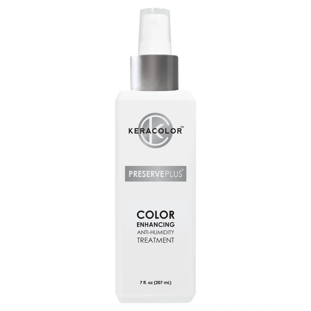 Stand up against frizz and fight off style-ruining humidity with the Keracolor Preserve Plus. This heat-activated featherlight formula features a polymer base, which helps hair repel water while improving the appearance of color vibrancy in your hair. This leave-in is full of frizz and humidity protection without worrying about product build-up. The Keracolor Preserve Plus can be used on all hair types and textures and will always give you a weightless and wonderfully smooth blowout. This anti-humidity treatment infuses keratin, coconut oil, biotin, and castor oil. Keratin helps smooth down the hair and fill in any gaps in the cuticle and cortex to strengthen hair overall. It additionally helps to improve hair elasticity and strength while giving strands a layer of UV protection. Coconut oil promotes scalp health, moisturizes hair, and adds lustrous shine and softness while protecting hair from breakage and environmental damage. Biotin and Castor oil smooth your hair while giving it a healthier shine.