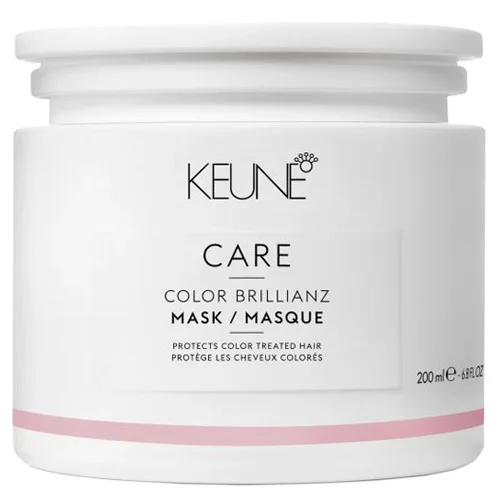 Formulated for color-treated hair. The Keune CARE Color Brillianz Mask is a nourishing and moisturizing mask that has a restoring formula that repairs, protects, and strengthens your hair. The Keune CARE Color Brillianz Mask is packed with ingredients to boost hair health and preserve your color, including a Color Sealing Complex, Solamer UVA and UVB filters, Sunflower seed extract, and silk proteins. The Color Sealing Complex creates a protective barrier around each strand, which locks pigments in, while Solamer UVA and UVB filters block out the sun’s rays to keep your color from fading. Silk proteins deeply moisturize, nourish, and add luminous shine, and Sunflower seed extract nourishes and neutralizes free radicals.