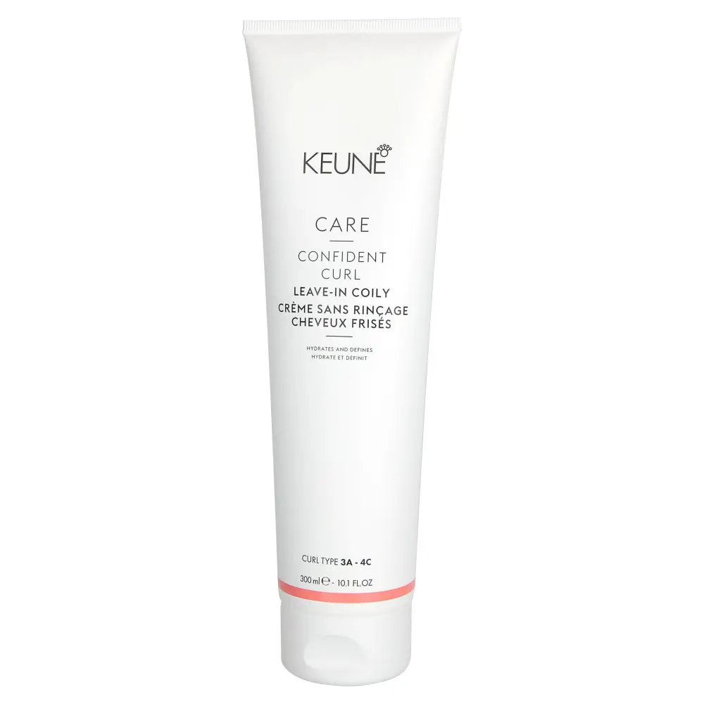 The Keune CARE Confident Curl Leave-In Coily deeply nourishes coils and provides unmatched frizz-free definition. It also adds a silk-like softness to each coil and is ideal for those with curl types 3A-4C. This ultra-rich leave-in cream is formulated with up to 96% natural ingredients, including Shea Butter, Coconut Oil, and Vinegar extract. Shea Butter is loaded with plant lipids that provide smoothing, deep moisturizing, and protection qualities to the hair. Lipids are essential for healthy hair as they build up the cuticle of the hair strand. Coconut oil has nourishing and hydrating properties and helps to protect curls against protein loss. By preserving the hair's natural protein, this leave-in will leave the hair stronger and more resilient to breakage. Vinegar extract is pH-balancing. It helps to smooth the hair's cuticle and reduce frizz, making your curls more defined. Embrace your natural curl beauty, boost confidence, and show off your soft, healthy, and hydrated coils with the Keune CARE Confident Curl Leave-In Coily.