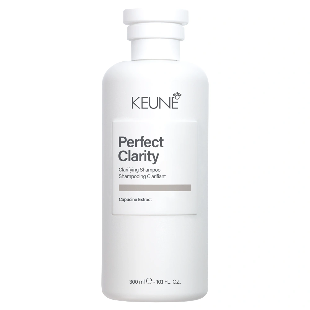 The Keune Perfect Clarity Clarifying Shampoo is a deeply cleansing shampoo that detoxifies the hair and scalp, without stripping away essential moisture. This shampoo is ideal for removing product buildup, excess oil, and environmental impurities, leaving the hair feeling light, clean, and revitalized. The Keune Perfect Clarity Clarifying Shampoo is the perfect reset for your hair and scalp and helps to restore hair's natural shine and volume. This shampoo is infused with Herbasol Apple Cider Vinegar, Alpha-keto Acids, and Capucine Extract. Alpha-keto Acids help to gently exfoliate the scalp, removing buildup and excess scalp oils while promoting a balanced and healthy scalp environment. These acids support scalp cell turnover and enhance vitality to create stronger and healthier hair from the roots. Capucine Extract is known for its soothing and purifying properties, reducing excess oils and impurities. This extract refreshes the hair to encourage vitality and enhances hair's overall health for long-lasting freshness. Lastly, the Keune Perfect Clarity Clarifying Shampoo uses Herbasol Apple Cider Vinegar to remove buildup from the hair. This key ingredient combines the natural benefits of apple cider vinegar with enhanced stability and ease, making it ideal for clarifying, balancing, and revitalizing the hair and scalp. The Keune Perfect Clarity Clarifying Shampoo features allergen-free ingredients and features a violet dew fragrance with a fresh, watery floral scent with pear, rode, violet, and a soft musky finish.