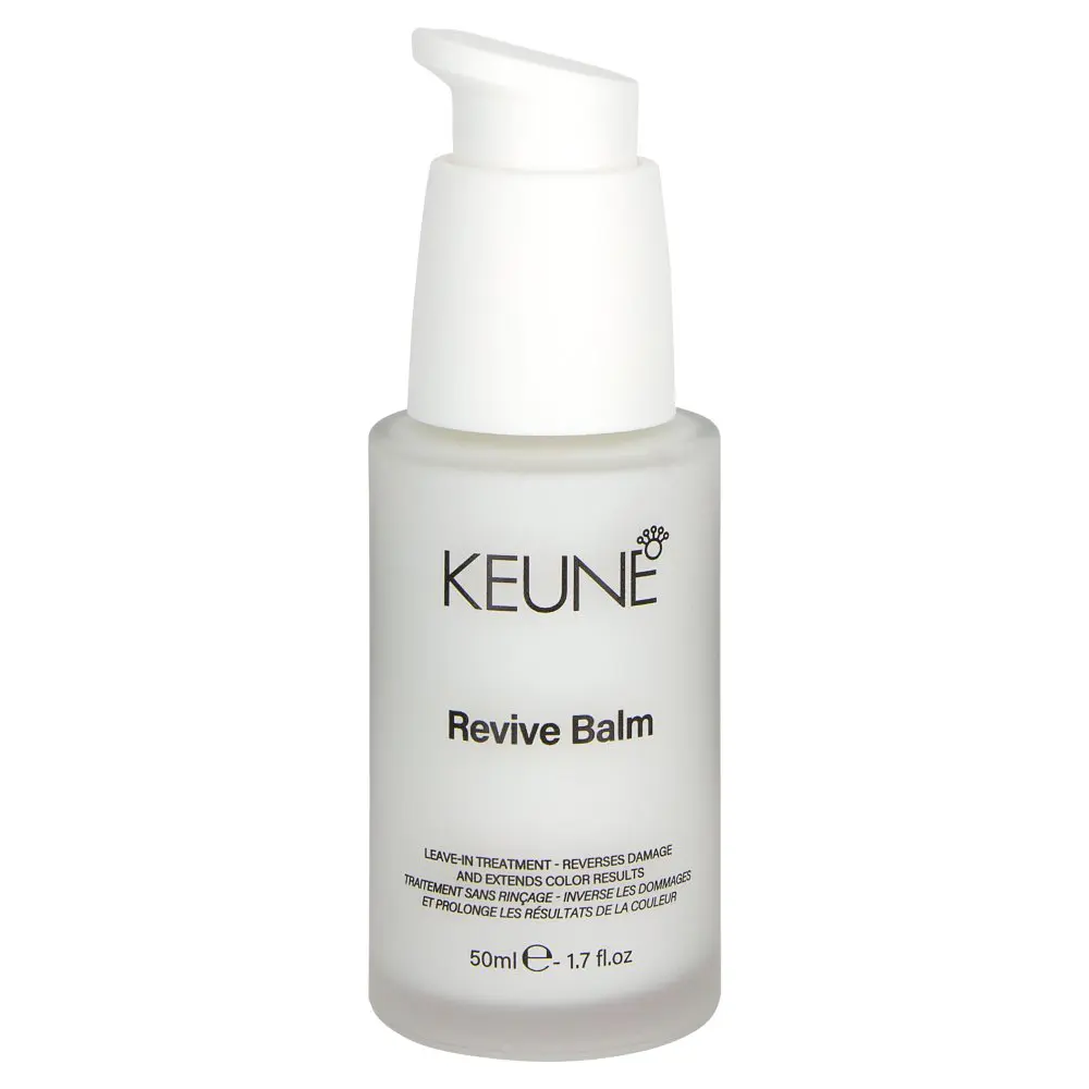 The Keune Revive Balm is an ultra-strengthening leave-in balm that is designed to help restore damaged hair strands and lock in hair color vibrancy, providing superior color longevity. This lightweight balm never weighs hair down, making it ideal for all hair types and textures. The Keune Revive Balm also provides the hair with thermal protection up to 446 degrees and is made from 90% natural ingredients. Additionally, this balm is both vegan and cruelty-free. The power behind the Keune Revive Balm is encapsulated Panthenol, Keune's Fiber Restore Technology, and Colorshield Technology. Panthenol is a wonderful ingredient that releases active nourishment to dry and damaged hair strands, even after the hair is dried. Keune's Colorshield Technology helps to lock in color pigments and helps to slow down color fading, while the Fiber Restore Technology helps to deeply penetrate the core of the hair to instantly repair, restore, and create new bonds within the hair shaft. The Keune Revive Balm is the ultimate reset for overly damaged and thirsty hair strands, restoring them back to their former glory.