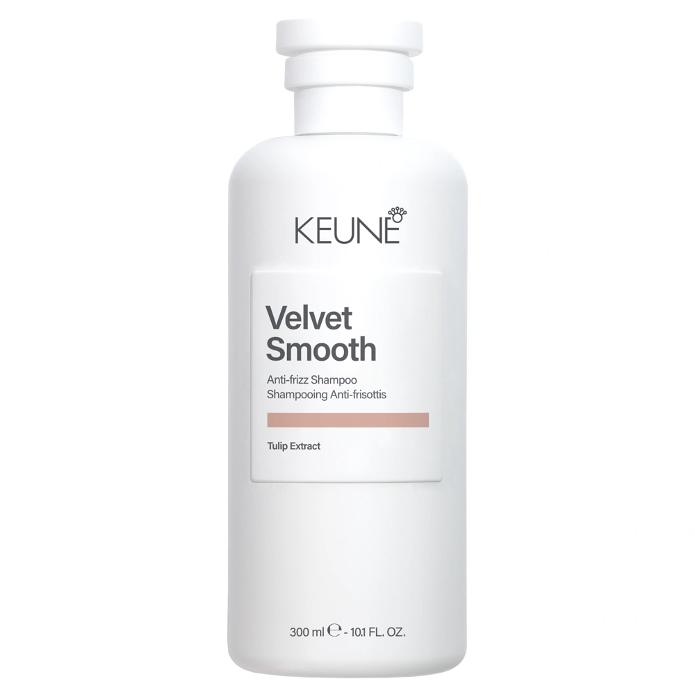 The Keune Velvet Smooth Anti-frizz Shampoo is a gentle cleansing shampoo that is designed to smooth and soften the hair's cuticle. This lightweight and hydrating shampoo fights frizz and humidity for up to 48 hours, resulting in smoother and repaired hair strands. The Keune Velvet Smooth Anti-frizz Shampoo is infused with Biomimetic Lipids and Tulip Extract. Tulip Extract is a botanical powerhouse that is known for its hydrating and smoothing properties. This extract is rich in natural antioxidants and moisture-binding compounds to help calm frizz, seal the cuticle, and defend strands against humidity. Tulip Extract provides the hair with deep nourishment and leaves hair silky and touchably soft, no matter the weather conditions. Biomimetic Lipids help to reinforce the hair's natural barrier and mimic the structure of the hair's own protective layer. This helps to restore moisture balance and strengthen the cuticle, providing a sleek and frizz-resistant finish. Biomimetic Lipids enhance the hair's resilience, preventing future hair frizz and flyaways. The Keune Velvet Smooth Anti-frizz Shampoo leaves hair sleek and smooth and with a florum fragrance of spiced floral and pink pepper, with notes of white florals, musk, and cedarwood.