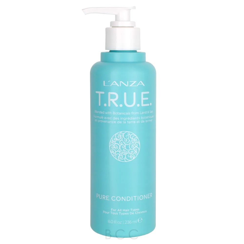 Experience clean beauty with the Lanza T.R.U.E Pure Conditioner. Formulated from upcycled Squalane, Apple Fruit Extract, and other plant-derived emollients to deeply nourish and hydrate your hair. While also blended with botanicals from land and sea to deeply quench hair's thirst, fight frizz and add incredible shine.