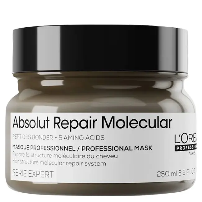 The Loreal Professionnel Serie Expert Absolut Repair Molecular Mask is a strengthening and restorative hair mask that boosts hair elasticity and promotes five times stronger hair strands with each use. This hair mask is infused with Loreal's Peptide Bonder and Amino Acids. Peptide bonder is a patented ingredient that addresses damage at the molecular level, while amino acids help strengthen and nourish hair strands thoroughly.