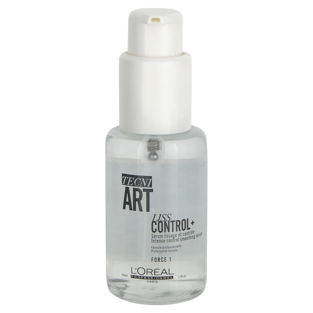 Finish off every hairstyle with a sleek and smooth look with this smoothing serum. The L'Oréal Professionnel Tecni.Art Liss Control+ Intense Control Smoothing Serum is a lightweight serum that controls unwanted volume and smooths out frizz for a frizz-free finish. This serum works great as a blow-dryer primer and is small enough to carry on the go for quick smoothing touch-ups. The L'Oréal Professionnel Tecni.Art Liss Control+ Intense Control Smoothing Serum has a level 1 out of 6 hold and can be layered with other products to add customizable shine and smoothness.
