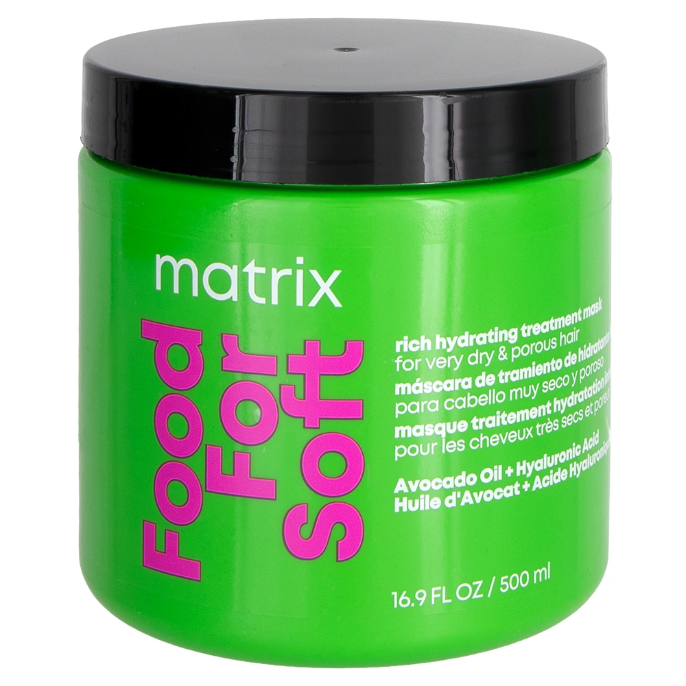 The Matrix Food For Soft Rich Hydrating Treatment Mask deeply moisturizes and replenishes even the driest and most porous hair. This mask fights frizz and leaves hair touchable and soft. The Matrix Food For Soft Rich Hydrating Treatment Mask is infused with Hyaluronic acid, which attracts and locks in moisture and maintains lipids and protein balance. This incredibly hydrating hair mask additionally includes avocado oil to add lightweight hydration to each and every hair strand. The Matrix Food For Soft is formulated for dry, porous hair types, leaving hair touchably soft, smooth, and shiny. This mask has a fragrance with top notes of apricot, spices, and osmanthus and is safe for color-treated hair.