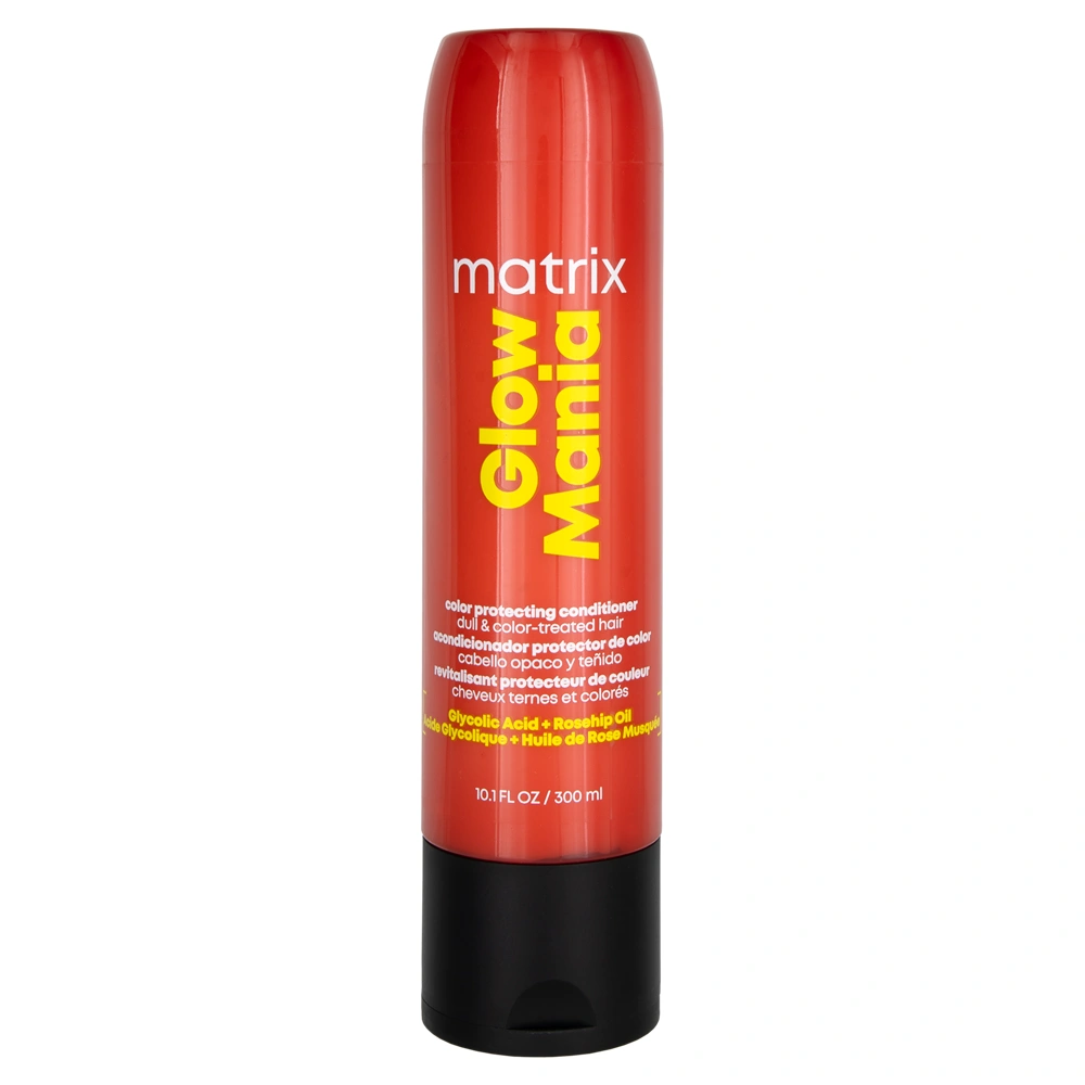 The Matrix Glow Mania Color Protecting Conditioner is a gentle detangling conditioner that is designed to enhance your color glow from the inside out. This conditioner harnesses the power of Glycolic Acid and Rosehip Oil to help protect and preserve your hair color, while additionally sealing and locking in shine. The Matrix Glow Mania Color Protecting Conditioner instantly leaves dull and color-treated hair well-protected, softer, shinier, and easily detangled. This conditioner features a lightweight and creamy texture and is both vegan and cruelty-free. The Matrix Glow Mania Color Protecting Conditioner features a bright and uplifting fragrance of sweet coconut water, juicy mango, sparkling grapefruit, and fresh geranium.