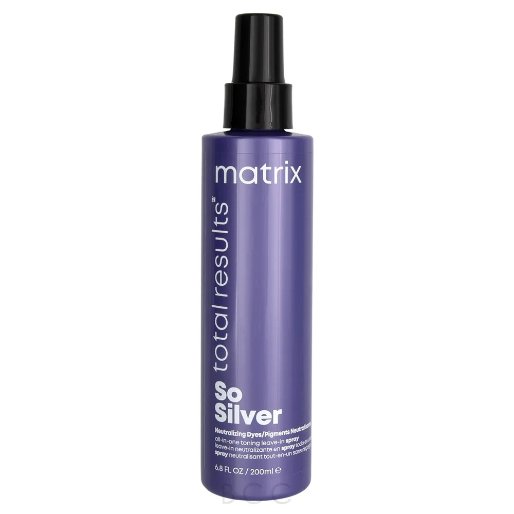Stop unwanted warmth in your blonde hair with the Matrix So Silver All-In-One Toning Spray. This buildable color-depositing toning spray helps to neutralize unwanted yellow undertones that sometimes appear in between salon visits. This spray is enriched with conditioning agents and neutralizing dyes to help you achieve your healthiest and brightest blonde tones yet! The Matrix So Silver All-In-One Toning Leave-In Spray adds incredible moisture to each and every hair strand, while additionally boosting hair's natural shine levels. This spray instantly helps to detangle hair strands, controls frizz and flyaways, smooths the hair's cuticle, and helps to prevent breakage from brushing and split ends.